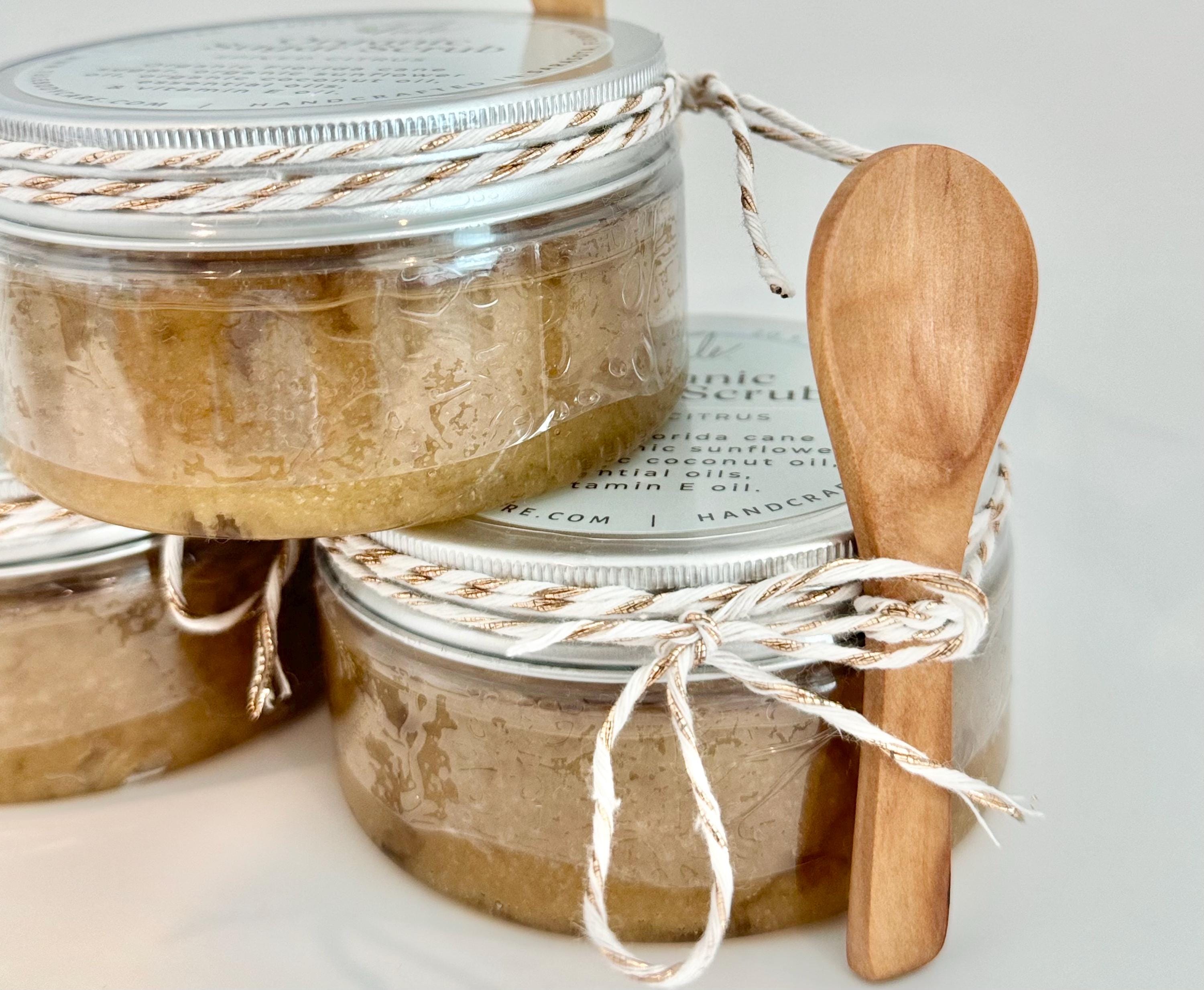 This delightfully scented scrub is made from a blend of raw molasses-derived turbinado sugar & organic Florida cane sugar. With the added organic natural oils, you will be left with a beautiful, clean, & moisturized glow. It's perfect for smoothing dry & dull feeling hands & body. These scrubs are good for both men & women.