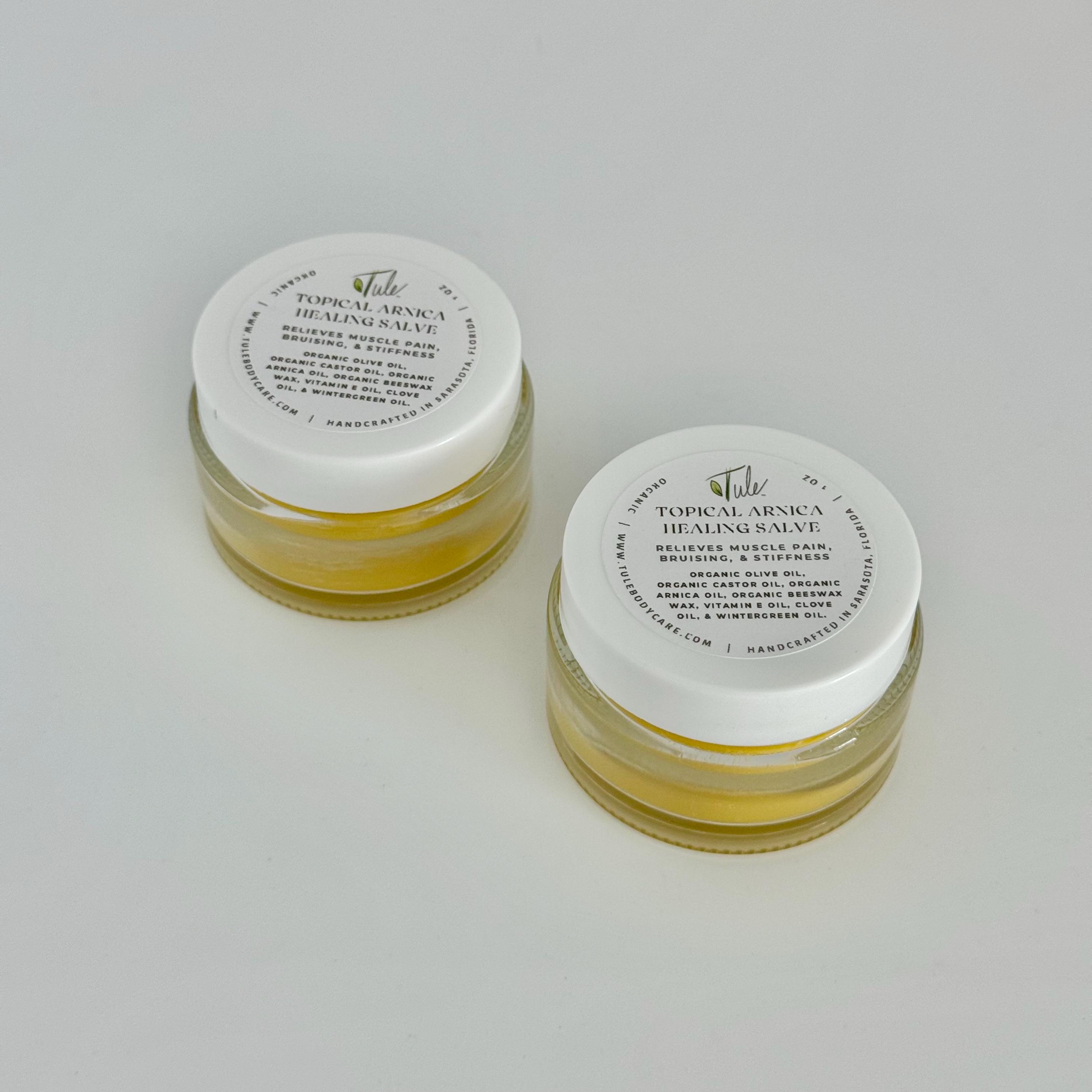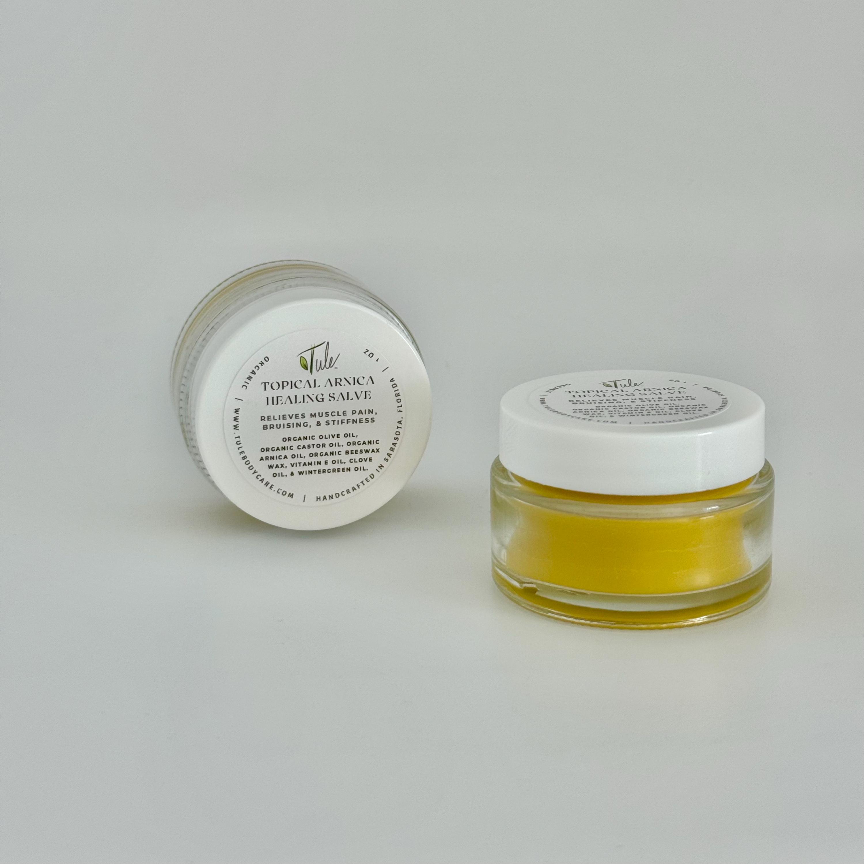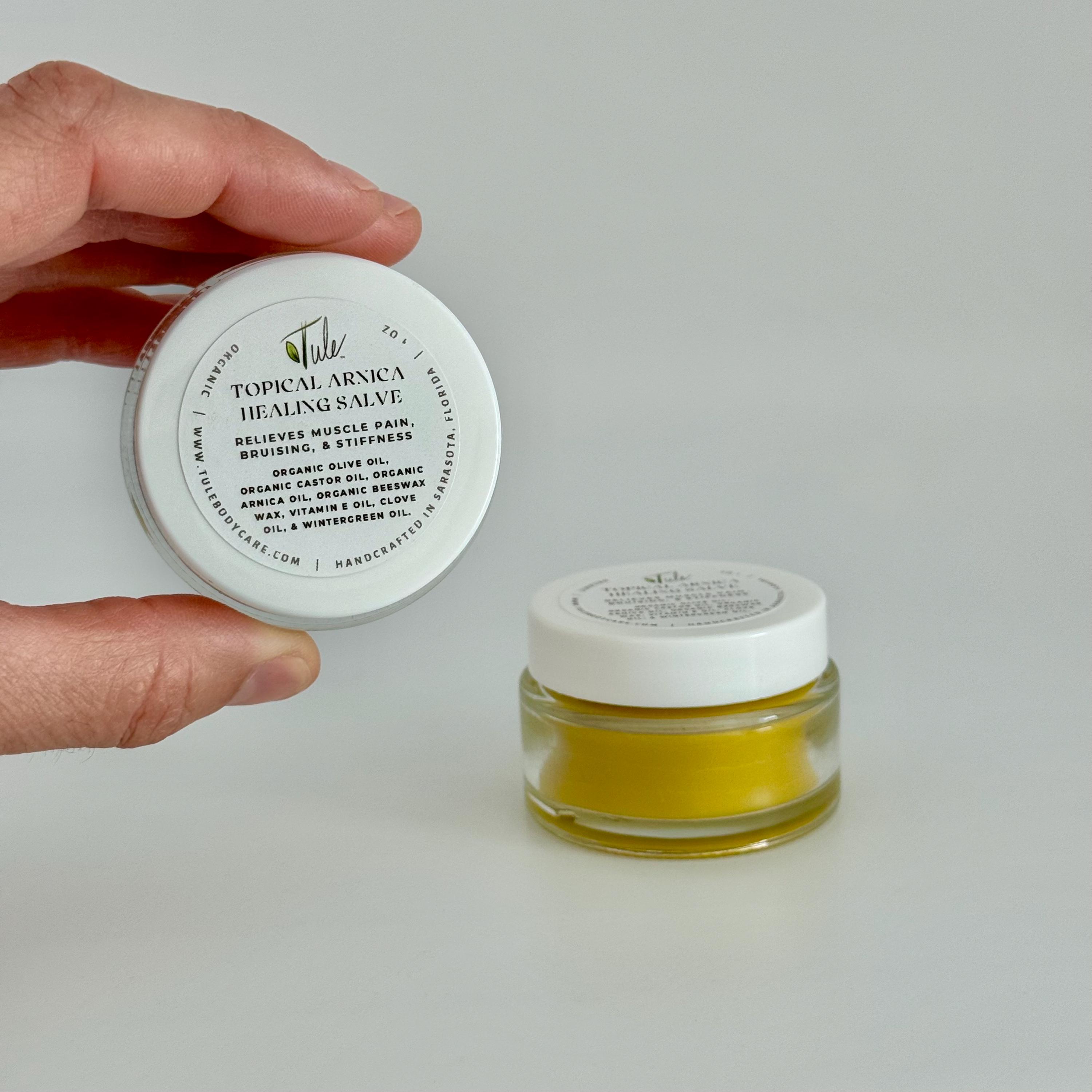 INGREDIENTS: Organic olive oil, organic castor oil, organic arnica oil, organic beeswax, vitamin E oil, and essential oils of clove & wintergreen.